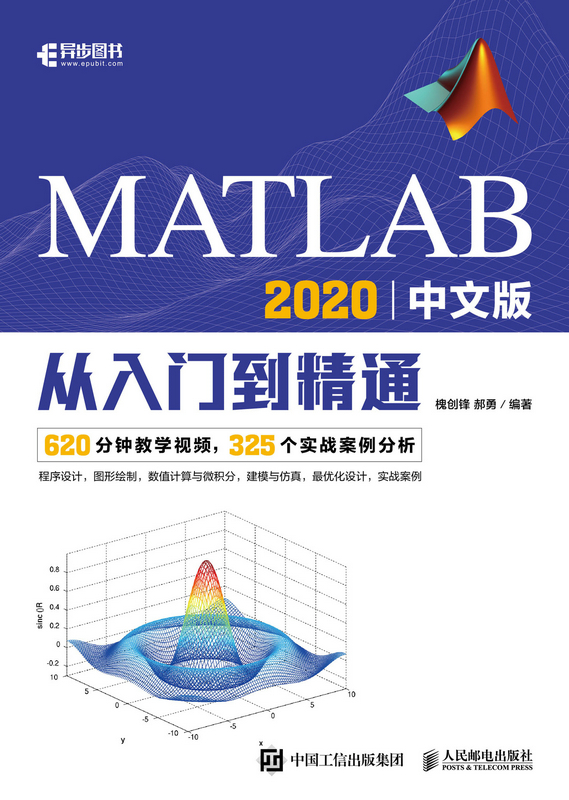 ★简介:本书主要内容包括MATLAB的入门,程序设计基础,二维图形绘制,图像绘制,数列、级数与极限计算,符号与方程组的运算,三维图形绘制,积分计算,微分方程,图形用户界面设计,Simulink仿真基础,MATLAB联合编程,优化设计,供应中心选址设计实例,数字低通信号频谱分析设计实例,函数最优化解设计实例等内容。本书覆盖数学计算与仿真分析的各个方面,既有MATLAB基本函数的介绍,也有用MATLAB编写的专门计算程序,利用函数解决不同数学应用问题,实例丰富而典型,包括两章经典实例,将重点知识进行融入应用,全书通过近400个实例指导读者有的放矢地进行学习。